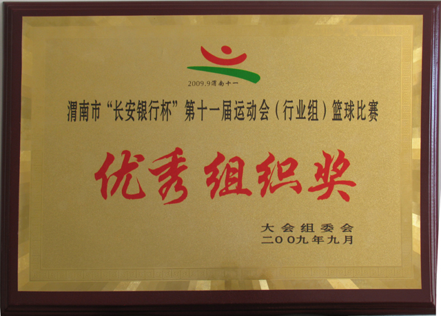 渭南市長安銀行杯十一屆運動會籃球比賽優(yōu)秀組織獎