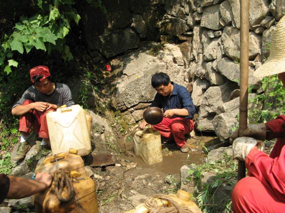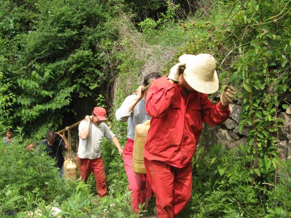 5、6月份,商南縣遭遇大旱,礦區(qū)嚴(yán)重缺水, 1301機(jī)施工遇到很大困難。面對(duì)困難,他們不畏艱險(xiǎn),克難攻艱,為了趕進(jìn)度保證施工質(zhì)量,在機(jī)長(zhǎng)帶領(lǐng)全體職工從二百多米外的深溝水源地一點(diǎn)一點(diǎn)用塑料桶收集水,再挑到供水池,以保證施工正常進(jìn)行。