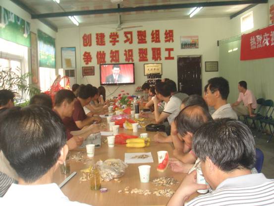 10:00,全體人員收看了中央電視臺現(xiàn)場直播胡錦濤同志在慶祝中國共產(chǎn)黨成立90周年大會上的重要講話,深刻了解我黨團結(jié)帶領全國各族人民90年奮斗的光輝歷程、偉大業(yè)績、寶貴經(jīng)驗,宣傳堅持和拓展中國特色社會主義道路、堅持和豐富中國特色社會主義理論體系、堅持和完善中國特色社會主義制度的現(xiàn)實意義和長遠意義,激勵廣大干部群眾更加奮發(fā)有為地投身全面建設小康社會、加快推進社會主義現(xiàn)代化實踐。