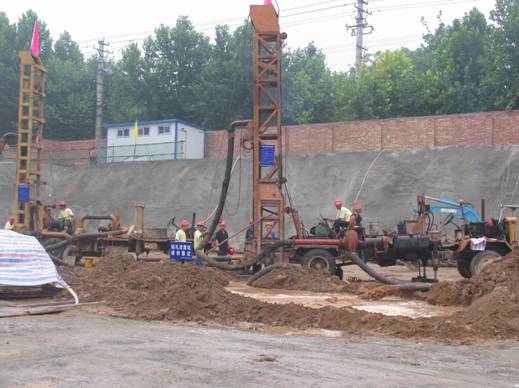 朝陽天下·商住樓,建筑面積45739.31平方米,設計地面以上25層,地下1層,基礎采用鉆孔灌注樁設計樁徑600mm,樁長29.5m,樁數(shù)447根,砼方量3727立方,鋼筋244噸,砼強度C35。項目施工由我隊基礎工程處承擔,預計工期100天。目前已完成三組試樁施工,經(jīng)檢測達到了設計要求。