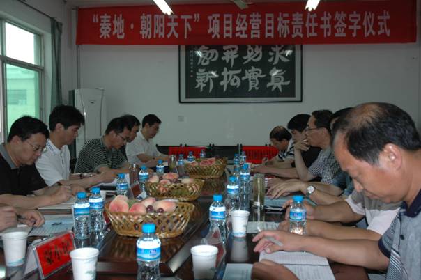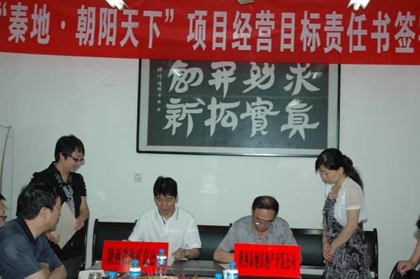 本網(wǎng)訊 7月29日上午,陜西省地礦總公司·秦地房地產(chǎn)公司“秦地·朝陽(yáng)天下”項(xiàng)目經(jīng)營(yíng)目標(biāo)責(zé)任書簽字儀式在我隊(duì)渭南隊(duì)部舉行。