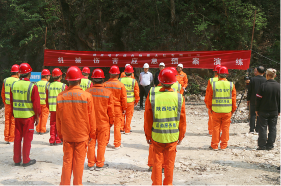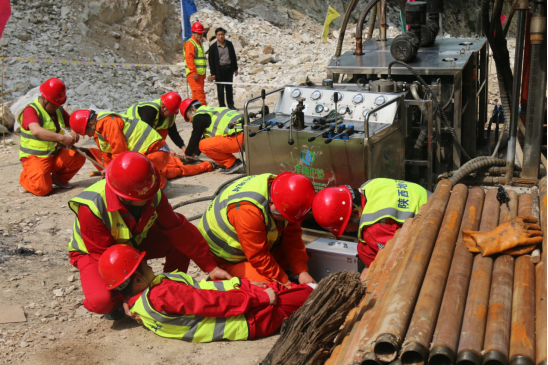 為了提高公司野外施工項目和人員的應(yīng)急能力,鍛煉員工的應(yīng)急處置技能,檢驗應(yīng)急預(yù)案的實施效果,增強野外施工項目員工在遇到突發(fā)事故時的應(yīng)變能力和自我保護能力,最大程度保證施工人員的生命和財產(chǎn)安全,根據(jù)公司安環(huán)工作計劃,2023年4月17日,我公司在鎮(zhèn)安縣楊泗鎮(zhèn)-東川鎮(zhèn)鎢鉬多金屬礦產(chǎn)地質(zhì)調(diào)查鉆探施工項目現(xiàn)場組織開展了機械傷害事故應(yīng)急演練活動。