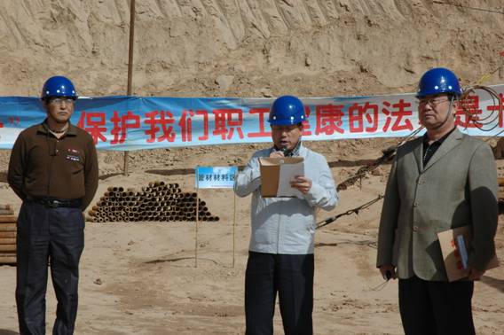 省地礦總公司黨委副書記、工會(huì)主席吳學(xué)海講話 分公司副經(jīng)理安林講話 高空作業(yè) 現(xiàn)場交流