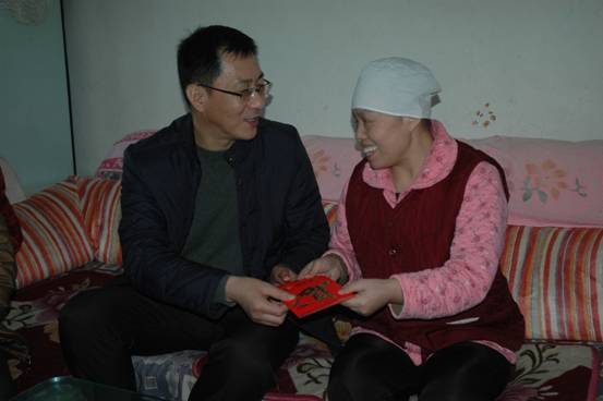 在困難職工郭金林家中,劉建勤總經(jīng)理詳細(xì)詢問了他的身體和家庭情況。劉建勤親切地拉著他的手說:“新年快到了,我代表地礦總公司黨政工來給你拜個(gè)年,希望你多鍛煉身體,把身體保養(yǎng)好”。在困難職工祝蘭英中,劉總關(guān)切地詢問她的病情及家庭生活狀況,鼓勵(lì)她面對(duì)暫時(shí)的困難,要保持良好的心態(tài),配合醫(yī)生積極治療,早日恢復(fù)健康。