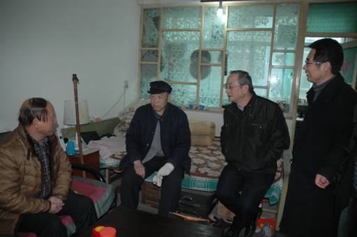 在張崇禮家中,隊(duì)長安林詳細(xì)詢問他的身體狀況及生活情況,為他送上慰問金和慰問品,并祝愿他身體健康、新年快樂。張崇禮對隊(duì)領(lǐng)導(dǎo)、地質(zhì)技術(shù)支部的慰問表示由衷感激,并激動地說:“感謝組織對我這個(gè)老黨員的關(guān)心!崩щy黨員周成科因病在醫(yī)院監(jiān)護(hù)室,陜西第二工程勘察院副總工(隊(duì)長助理)李彥斌、黨群工作部主任董新良及地質(zhì)技術(shù)支部的同志將慰問金和慰問品送到看護(hù)病人家屬手中,委托他們捎去組織的問候。